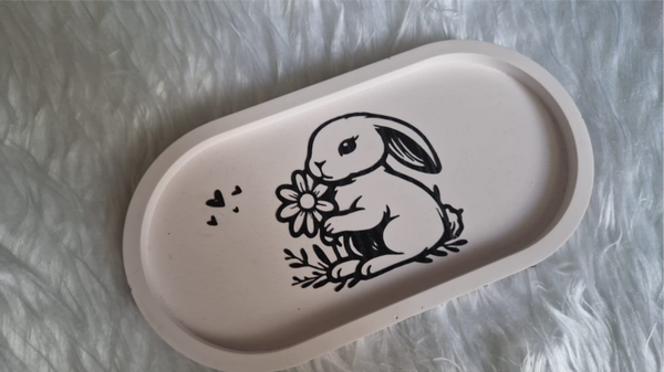 Resin Deko Teller Untersetzer Tablett Oval Rund Weiß Grau