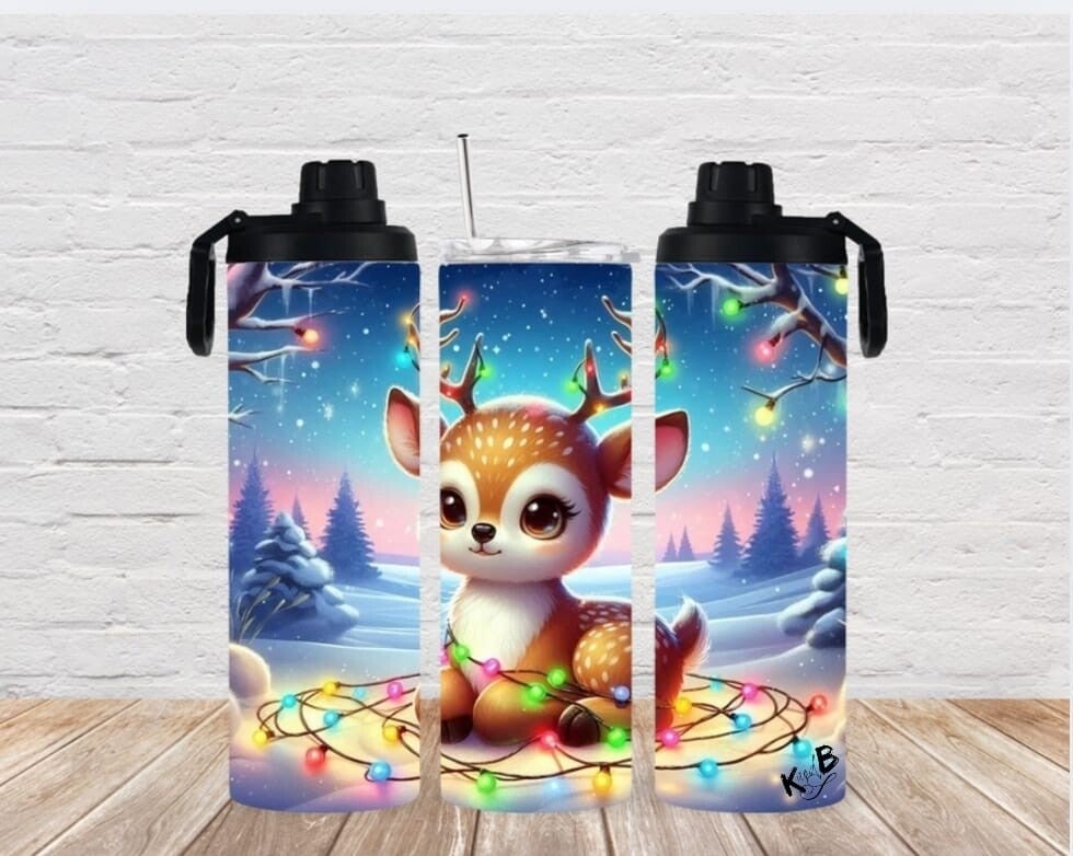Thermobecher mit 2 Schraubverschlüssen "niedliches Reh in Winterlandschaft 1""
