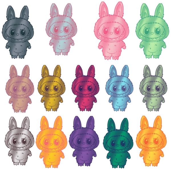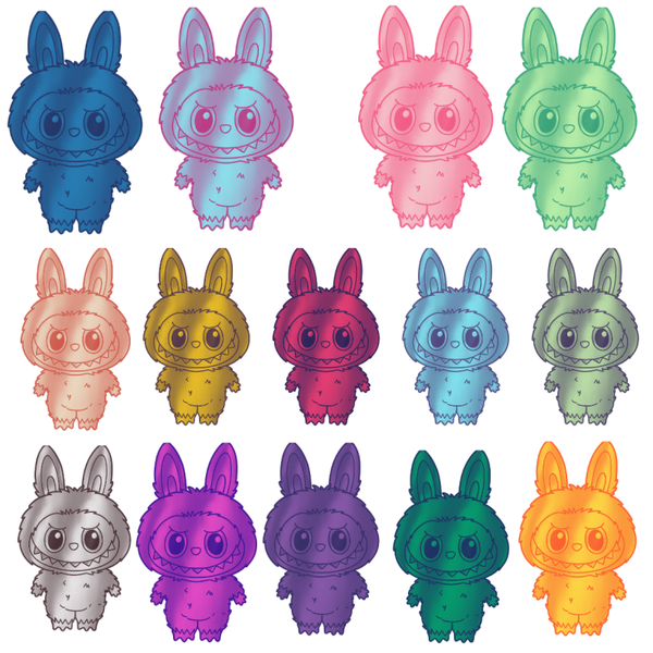 Mach dein Laptop, Handy, Trinkglas, Skateboard oder Notizbuch zum Hingucker – mit diesen farbenfrohen LABUBU Hologramm-Stickern im niedlichen Bunny-Design! Die Motive sind auf hochwertiger wasserfester Vinylfolie gedruckt und glänzen mit einem regenbogenfarbenen Effekt – perfekt für drinnen und draußen.